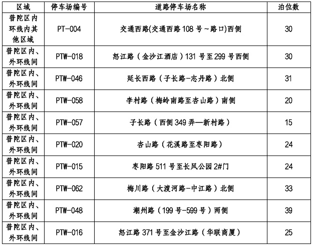 根据市、区公安交警部门核定,本次新增的10处智慧道路停车场具体设置信息如下表: