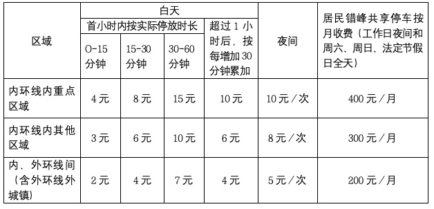 根据市价格主管部门会同市财政部门核定的本市智慧道路停车场收费标准和计费规定(如下表),本次新增的1处内环线内其他区域,9处内、外环线间的收费标准和计费规定执行如下: