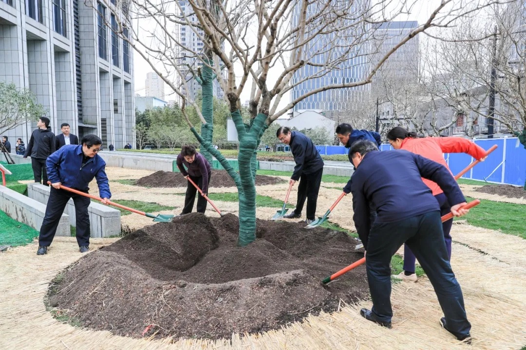 黄浦区2025年全民义务植树活动举行,就在这块即将开放共享的单位配套绿地