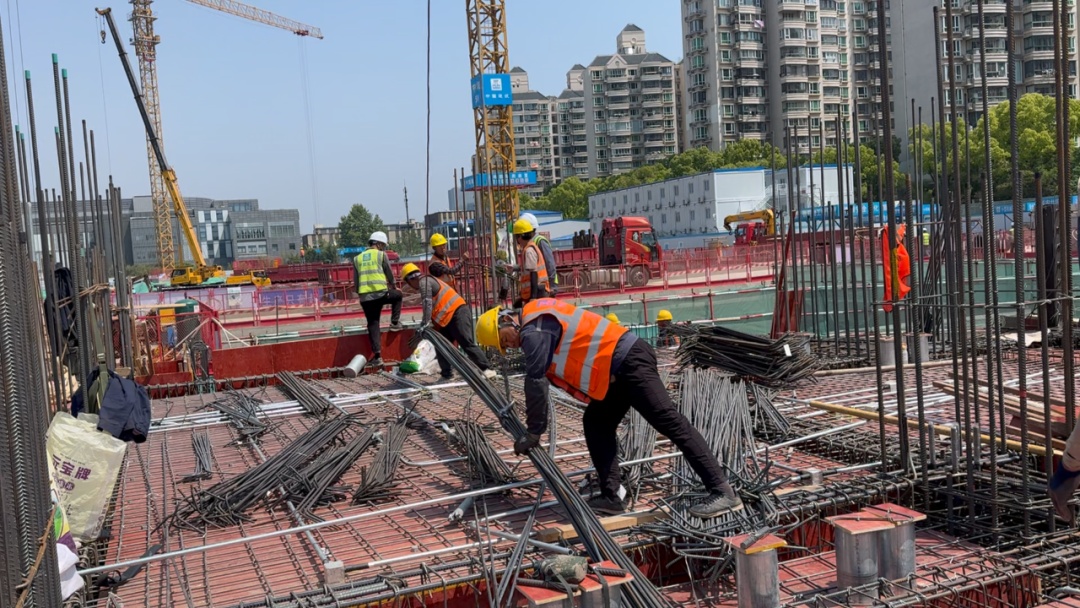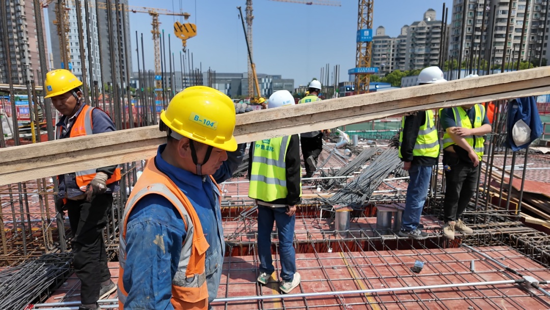 “为确保项目顺利有序推进,五一期间,我们600多名工友全部坚守在岗位上,争取早日建成高品质的好房子。”静安灵石社区项目执行经理苏军臣介绍,为保障工程进度与质量,项目团队在假期期间全员在岗,科学安排施工计划,严格把控每一道工序。
