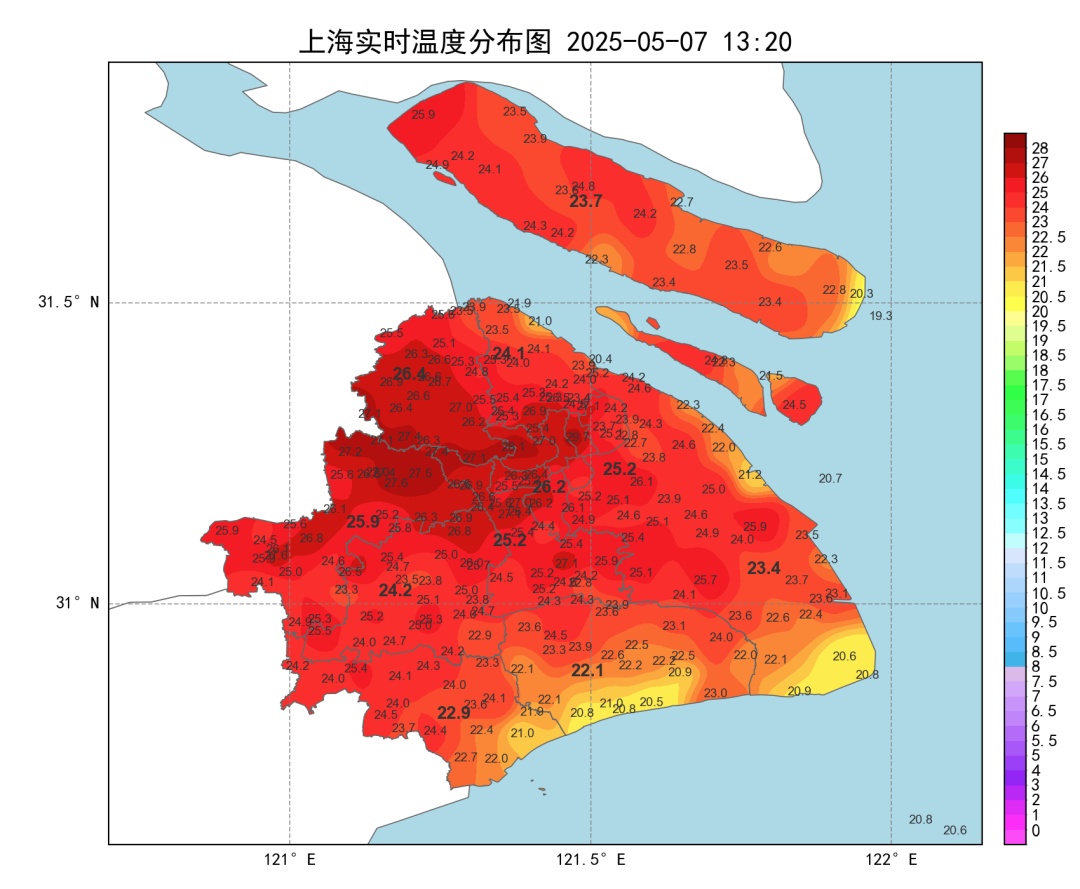 8日下午到9日上午将出现阵雨或雷雨天气,过程累积雨量40—70毫米,全市以大雨为主,其中崇明、嘉定、宝山、青浦、金山等地的局部可能出现暴雨,主要降水时段出现在8日傍晚到9日早晨,并伴有雷电和短时强降水,最大小时雨强20—40毫米。