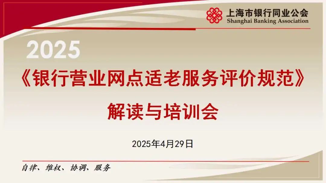 4月29日下午,公会金融消费者权益保护专业委员会组织开展《银行营业网点适老服务评价规范》(以下简称《规范》)解读与培训会。会议由专业委员会主任、交通银行上海市分行个人金融业务部/消费者权益保护部副总经理吴兴东主持,公会相关负责人及47家会员单位近120人参加会议。