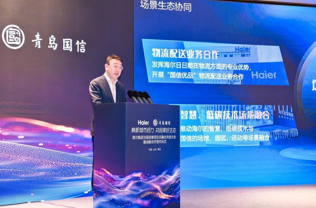 青岛国信集团是青岛市属企业,始终匹配城市发展战略、服务城市发展大局,打造形成现代海洋、产业金融、大基建和城市运营等主业板块,连续多年荣获青岛市榜样企业。青岛国信集团党委书记、董事长刘鲁强在致辞时指出,举办此次大会的目的是“开创海尔与国信产业生态合作新模式,为城市提振消费、扩大内需探索创新示范路径”。“精诚合作,才能共赴山海;跨界融合,方能赢得未来。”国信集团将秉持“开放办企业”理念,精诚合作、互利共赢,推动优化资源配置、共享发展机遇,努力打造国有企业与国际化企业合作的样板范式。