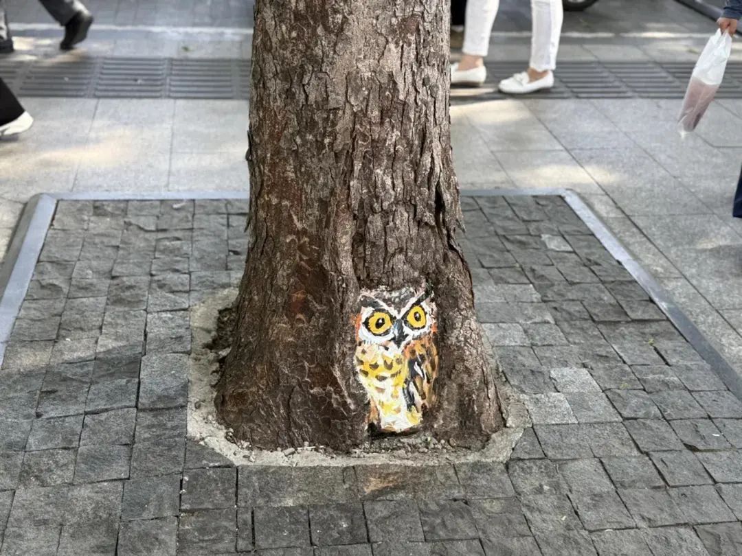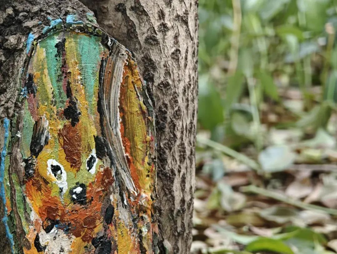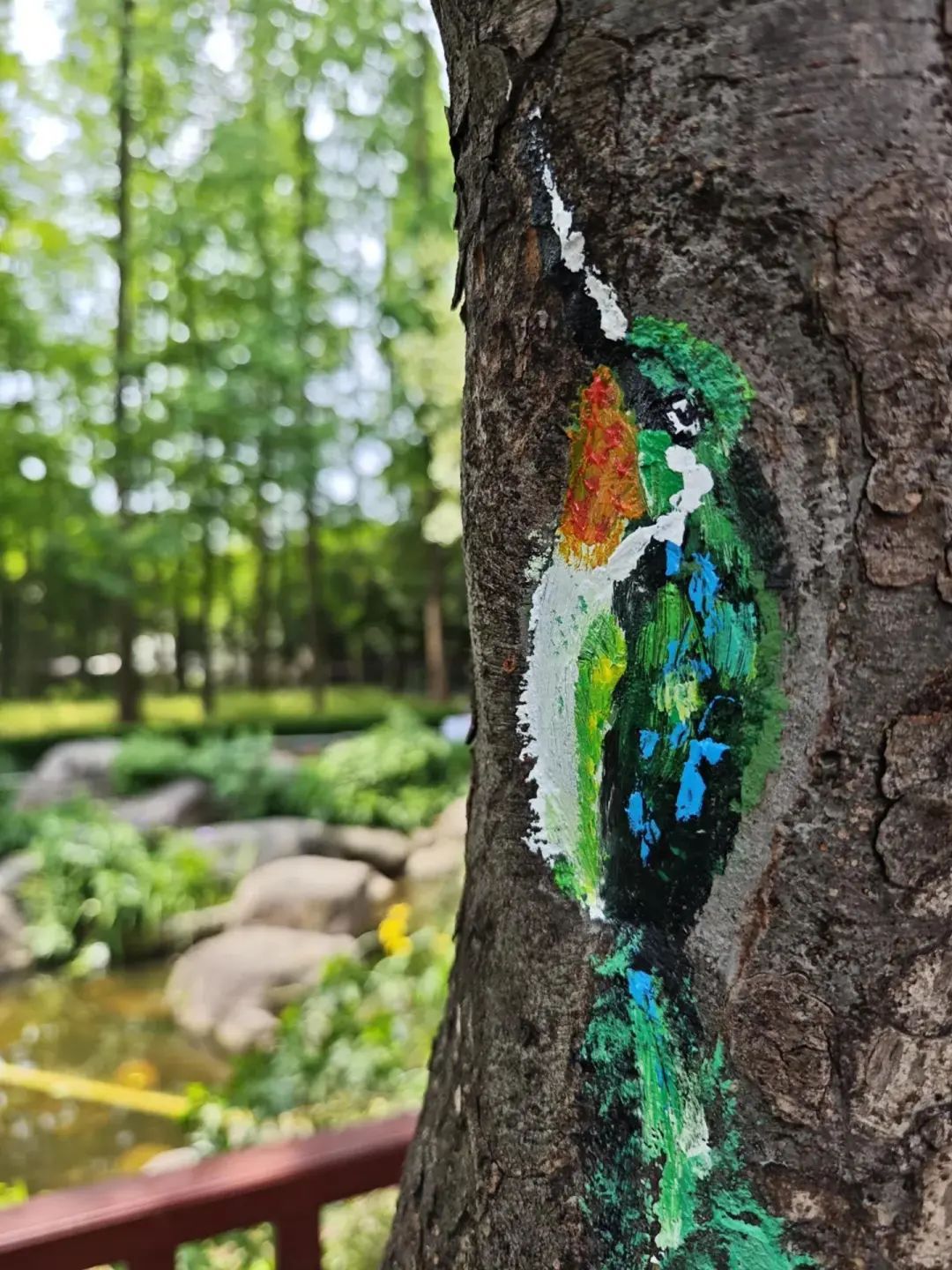实施过程中,公园团队严格遵循城市绿地精细化养护逻辑及树木保护规范,先对树洞进行专业清理和防腐处理,再以专业彩绘颜料绘画,从“伤疤”到“画卷”,树洞完成了蜕变。这些彩绘作品既保留了树木的自然肌理,又赋予其全新的艺术生命。