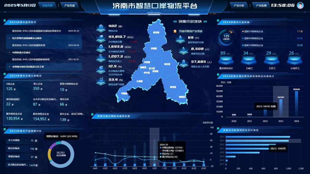 5月14日,记者从济南市委、市政府新闻发布会获悉,2025年,济南市口岸物流办将按照市委、市政府工作部署,扎实推进“165”工作体系。“1”即紧盯“高标准建设北方商贸物流中心”这一个目标;“6”即实施枢纽设施提升、“双循环”通道畅通、新质生产力培育、市场主体壮大、口岸治理赋能、反走私品牌擦亮等六项重点工程;“5”即强化政策支持、用地保障、人才培养、统计监测、区域协作等五项保障措施,加快完善“通道+枢纽+网络”的现代物流运行体系。