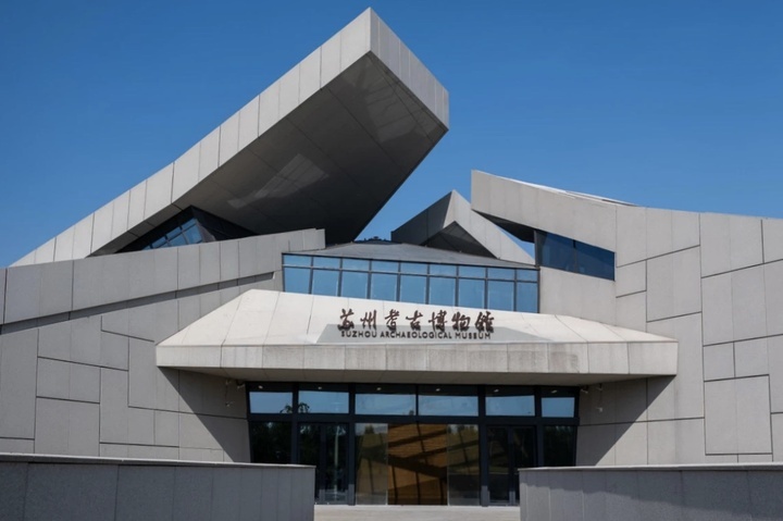 记者了解到,苏州考古博物馆位于苏州市石湖景区内,紧邻江苏省文物保护单位越城遗址东北部。该馆由中国工程院院士、东南大学教授程泰宁主持设计,巧妙地融合了越城遗址的历史文化内涵,建筑造型以地景式场地设计和越城遗址出土的“石锛”“钺”为设计原型,由大气奔放的三角形块面构成组合,营造古朴、沧桑、野趣的历史氛围,既有传统文化的内涵,又有简洁明快的现代设计理念,视觉效果绝佳。