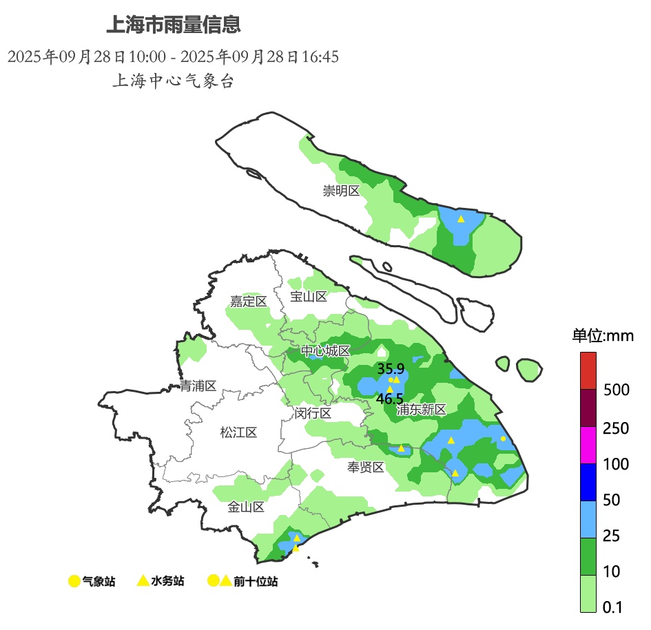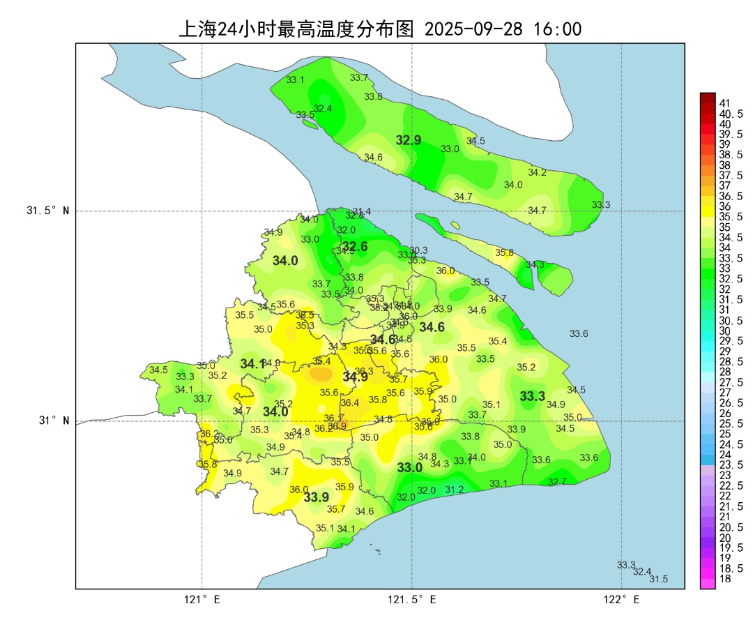 上海今日雨热同在,体感潮湿闷热。徐家汇站最高气温34.6℃,闵行站为全市最高达34.9℃。中午起一些地方出现短时阵雨或雷雨,主要集中在东部、北部和南部地区,以浦东康桥镇46.5毫米为最大(11时至16时45分统计)。预计今天夜间一些地方仍有阵雨或雷雨,下班时段注意交通安全。