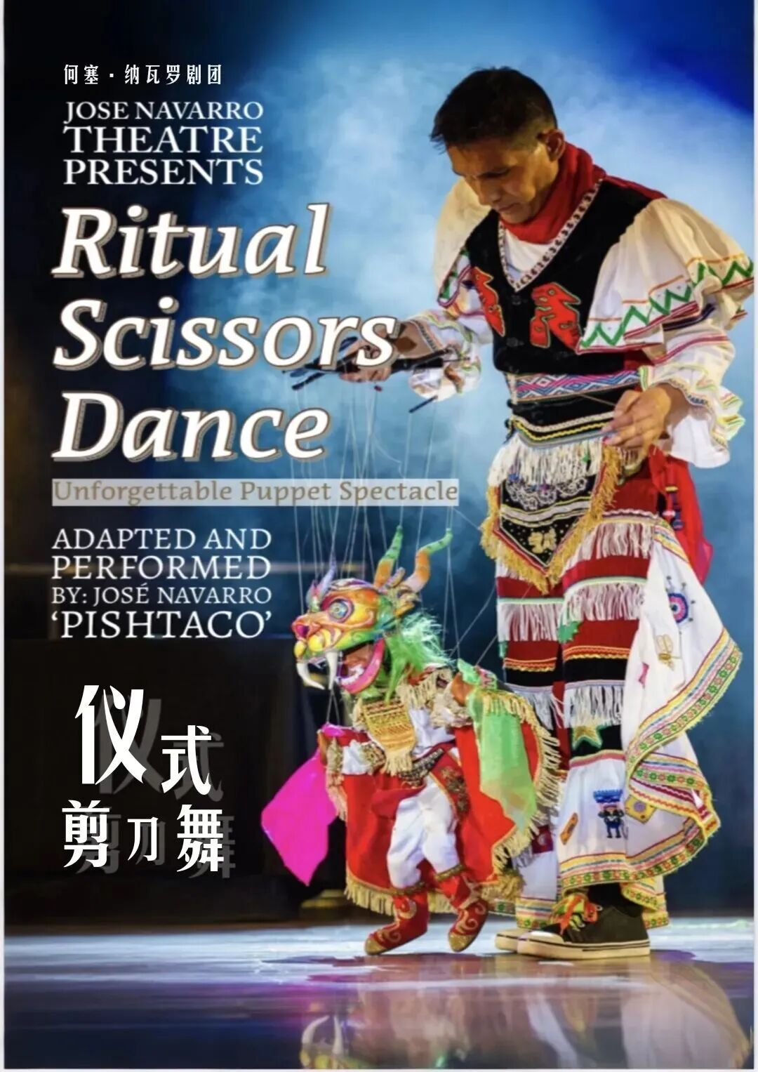 英国木偶剧《仪式剪刀舞》以秘鲁安第斯山脉的千年传统为灵感,将全球唯一以剪刀为伴奏乐器的“剪刀舞”与现代木偶艺术相融合。剧中,秘鲁盖丘亚族舞者手持特制无钉金属剪刀,通过撞击发出高低错落的韵律,配合小提琴与竖琴的悠扬伴奏,演绎出人与自然、神灵对话的古老仪式。