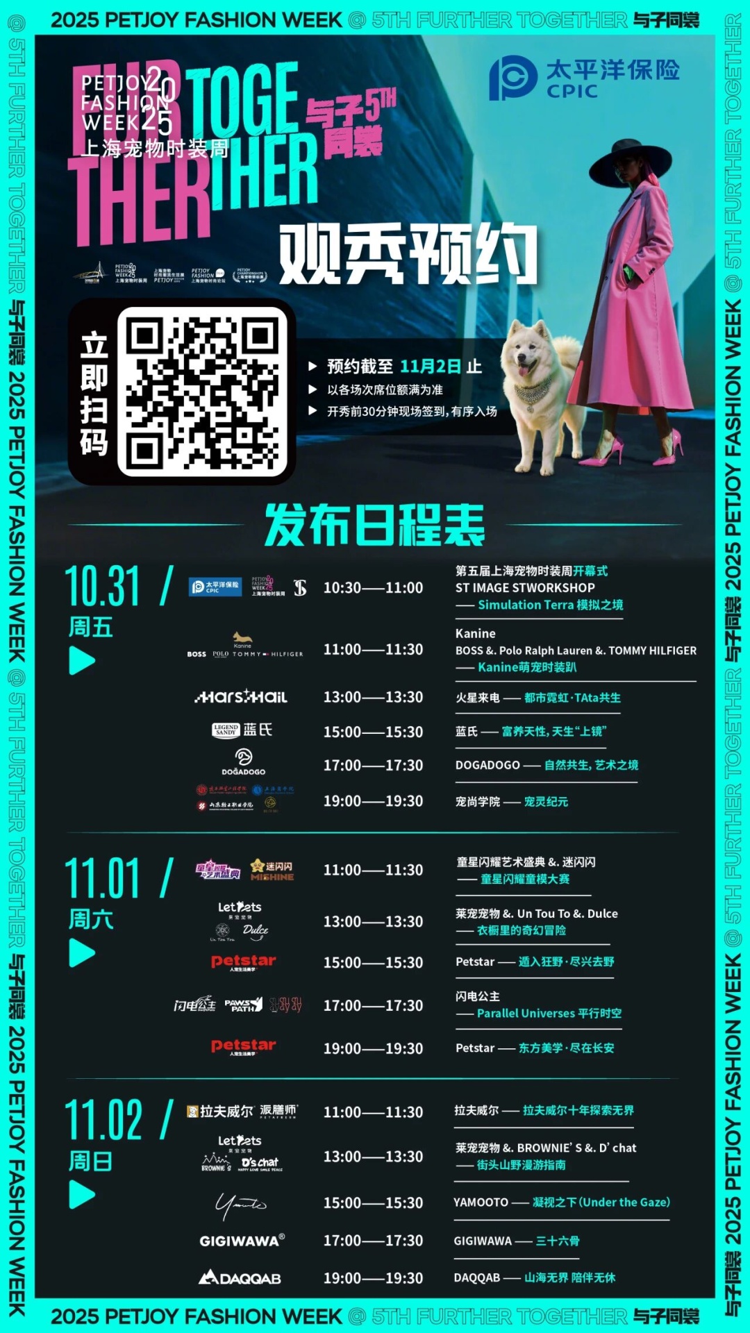 据悉,第五届上海宠物时装周将于10月31日启幕,以“与子同裳”为主题,通过为期3天的“线下沉浸秀场+线上无限秀场”的模式,打造宠物时尚文化盛宴。届时,在前期海选中脱颖而出的萌宠,将有机会登上正式T台。