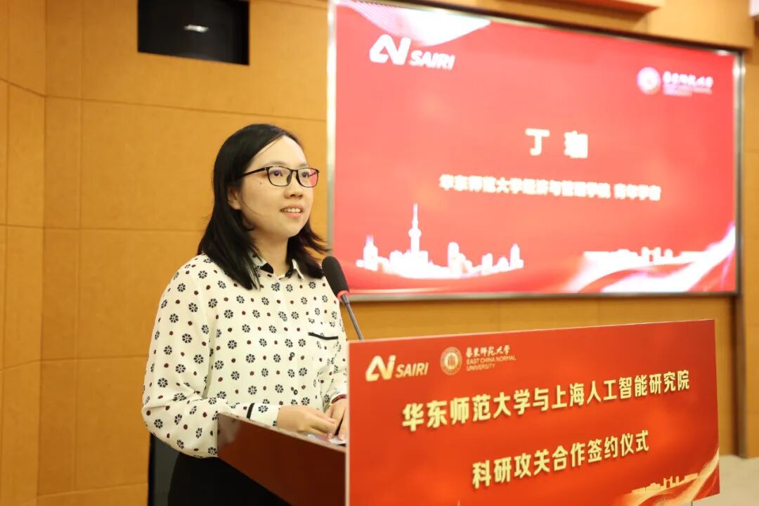 经济与管理学院青年学者代表丁珈博士作为科研团队代表发言,表达了科研团队对参与此次高水平合作的信心,期待通过协同创新,不仅能够催生前沿学术成果更能形成可落地、可推广的解决方案切实服务产业发展。