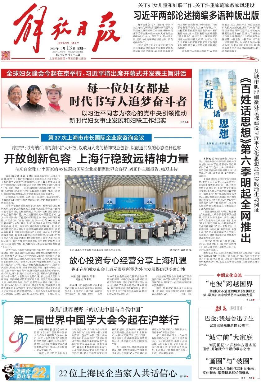 本文刊载于2025年10月13日《解放日报》第1版:要闻