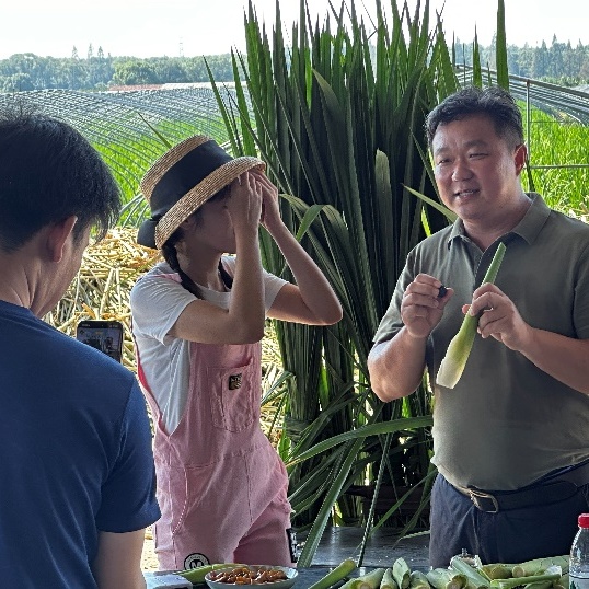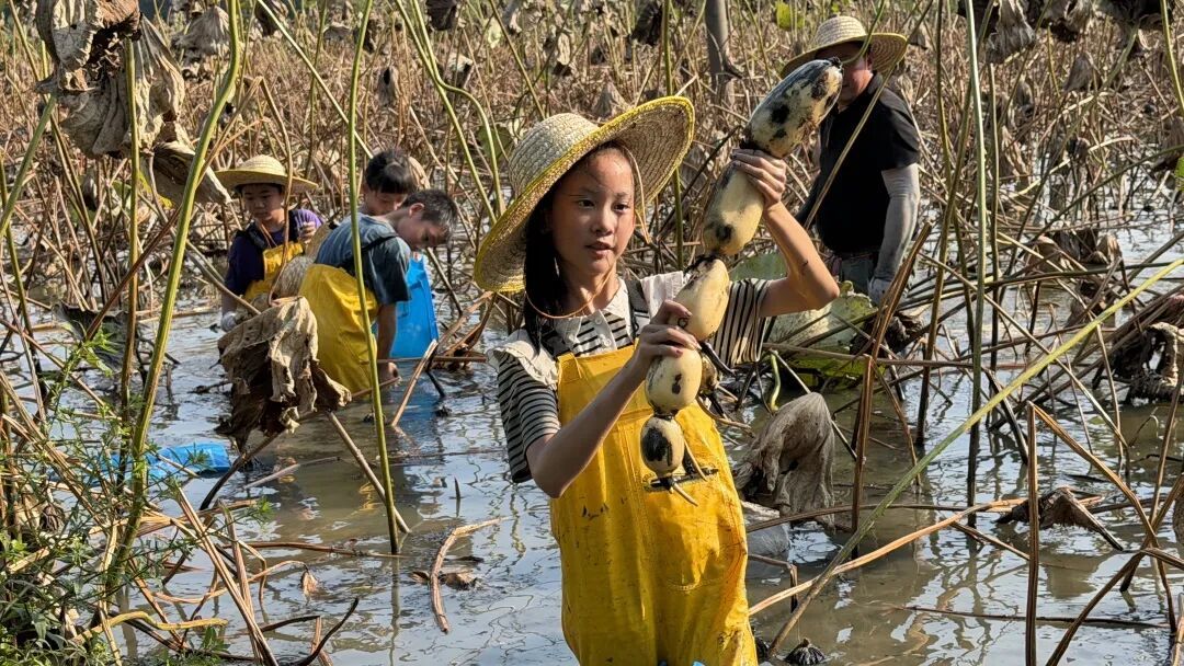 直播的镜头,不只聚焦于农产品本身,更将太北村的农耕文化、自然风光与村民的日常生活娓娓道来。越来越多市民被直播中那片翠绿的茭白田与质朴的乡村生活所吸引,纷纷走进太北村。村里顺势推出“挖呀挖”系列亲子研学活动,让孩子与家长一同下田采摘茭白、学习农事知识,亲身体验“晨兴理荒秽,带月荷锄归”的诗意田园。孩子们手持小铲,在农民指导下挖出白胖鲜嫩的茭白,家长则用手机记录下这份“泥土里的快乐”,农耕文化在互动中焕发出新的生命力。