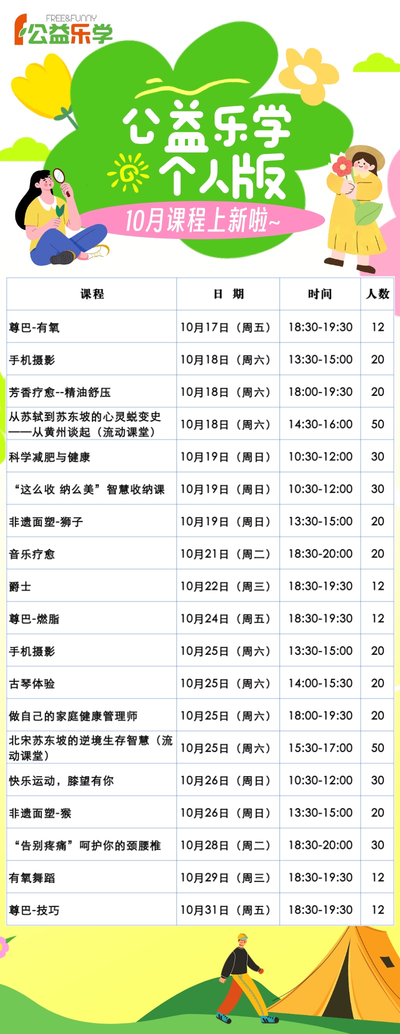 2. 请仔细确认课程地点和时间、年龄限制等规则,避免造成公益资源的浪费;如因故不能参加本次课程,请至少提前3个工作日请假。