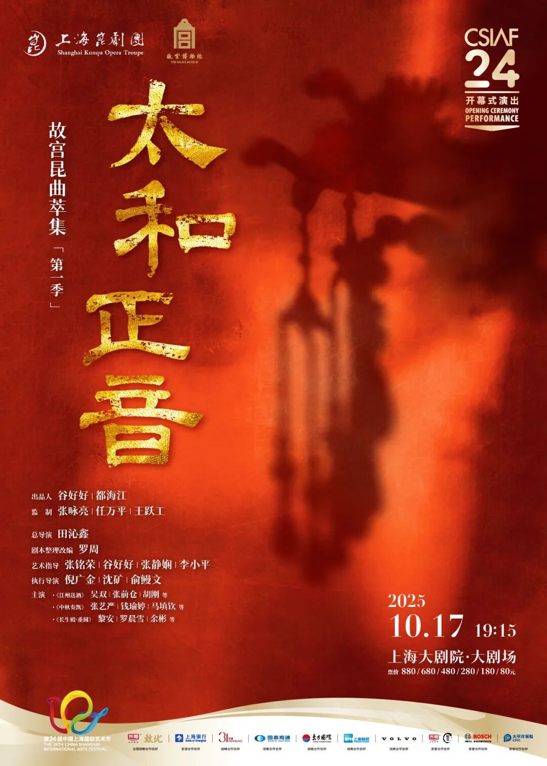 昆剧《太和正音——故宫昆曲萃集》由上海昆剧团与故宫博物院联合出品,该剧依托故宫文博团队深厚的学术支持,在尊重历史的基础上进行艺术创新,从故宫博物院藏典籍中精选《江州送酒》《中秋奏凯》《长生殿·重圆》三折,分别以潇洒文人、英武将军、多情帝妃为主线,多维展现昆曲艺术的丰富内涵。由梅花奖得主吴双、黎安、罗晨雪及余彬、胡刚、张前仓等实力演员领衔,“昆五班”青年演员勇挑武戏大梁,行当齐全、文武兼备,以“五班三代”的强大阵容,彰显昆曲与古为新、融合创新的艺术魅力。作品以典雅精致的舞台呈现和深入浅出的文化表达,为观众打造一场视听与心灵的文化盛宴,广受各界好评。该剧也将作为第二十四届中国上海国际艺术节开幕式演出。