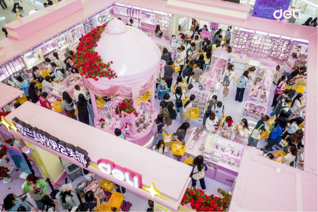 与此同时,得力通过与一线商圈合作,打破传统零售空间界限,让快闪不只是“卖货”,更成为“造话题、引流量”的超级营销阵地。此外,得力还在拓展多渠道布局,樱兰联名产品将同步入驻三福、酷乐潮玩、X11、TGP等KA渠道,线上线下联动,从校边店到文创店、从购物中心到核心商圈,全场景覆盖,进一步扩大品牌影响力。