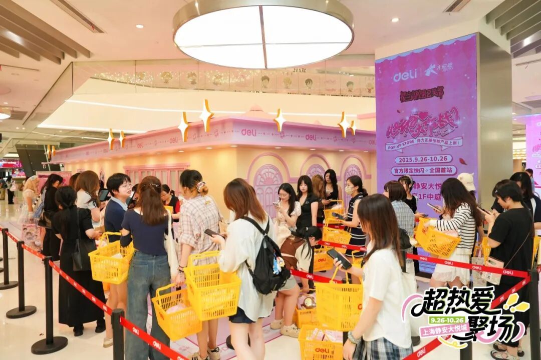 据悉,本次樱兰快闪十分火爆。开幕前,#得力心动大作战#、#樱兰高校#等话题就冲上微博、小红书热搜,短短几天话题量破千万。上海首站开业当天上午9点半,商场外便排起长龙,热门周边几小时内售罄,首日业绩直接创下新高;节假日期间人流量更是翻倍,不少外地粉丝坐高铁赶来,只为现场打卡。