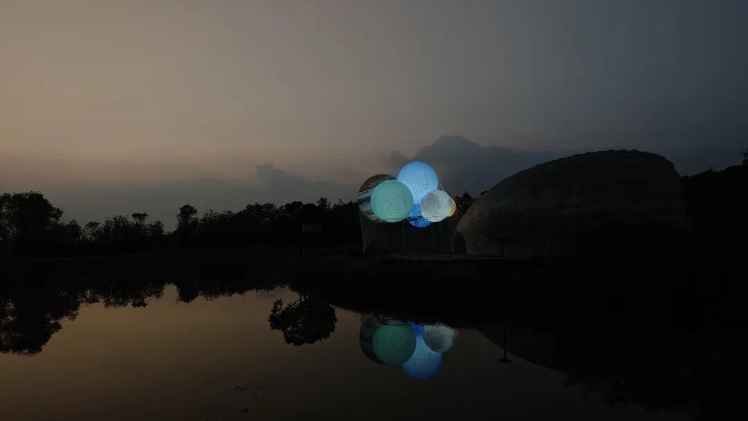 第二届上海国际光影节宝山分会场超人气灯光艺术装置——“捕获星空”正式降临吴淞炮台湾公园贝壳剧场,带你一秒穿越宇宙,伸手触碰星辰!