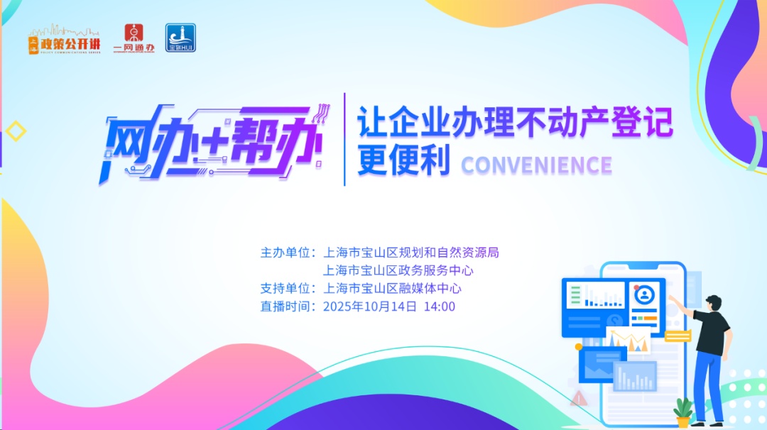 为持续优化营商环境,提升不动产登记便利度,进一步提升企业群众办事满意度和获得感,宝山区自然资源确权登记事务中心将于近期开展线上直播活动,介绍不动产登记“全程网办”“跨省通办”等业务。
