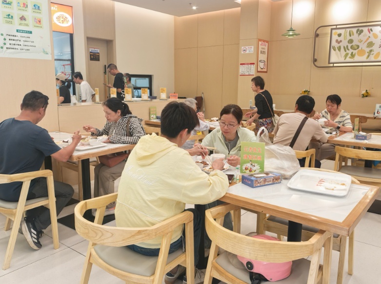 值得一提的是,智慧化升级与环保理念的融入让食堂的服务品质再上一个台阶。食堂引入智能计费系统,市民只需将餐盘放入指定区域,2-3秒即可完成收费,既省时间又提效。今年,食堂还获评“无废长者食堂”,通过推出“半份菜”“半份饭”,引导大家按需取餐,这样既能避免浪费,又能让大家吃到更多样的菜品。不仅如此,食堂产生的厨余垃圾经处理后,作为有机肥料用于合作社蔬菜种植,真正实现“源头减量—资源化利用”的循环。