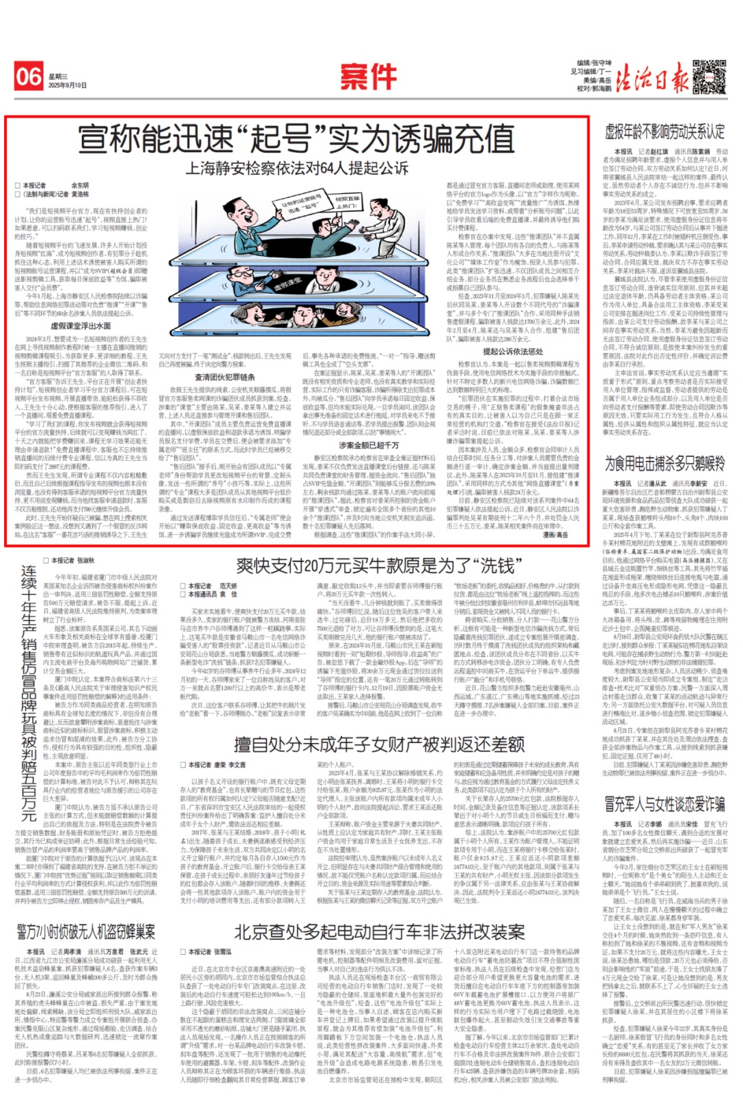 目前,静安区检察院已陆续对该系列案件中64名犯罪嫌疑人依法提起公诉。近日,静安区人民法院以诈骗罪判处吴某有期徒刑十二年六个月,并处罚金人民币三十五万元,姜某、陈某相关案件尚在审理中。
