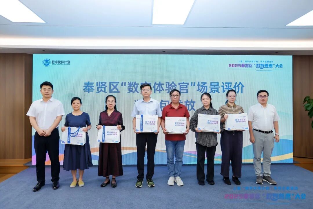 为推动场景持续优化,奉贤区持续推进“数字体验官”走进各类数字化转型应用场景,目前体验官队伍已达121人,覆盖全区各街镇,累计收集场景体验反馈超千条,形成“体验-反馈-优化-创新”闭环路径。大会现场还举行了2025奉贤区“数字体验官”场景评价装备包发放仪式。通过“数字体验官”项目,开放了市民直接进入一线数字场景进行体验、评价的渠道与工具,“政-企-民”多元共治的数智普惠生态格局初步形成。