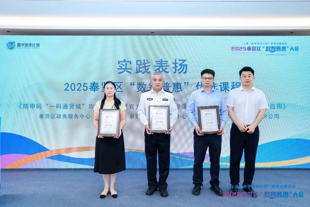 同时,精心打造“基础-进阶-通识-热点”四大模块11门普惠课程,内容涵盖AI大模型应用、随申码使用、健康管理等实用技能。2025年累计开展巡回课堂42节,覆盖全区13个街镇及旅游区,惠及市民超1300人次,有效助力老年人跨越数字鸿沟,小学生成为家庭“数字小老师”,也为青年大学生等提供了数字化方向的就业创业新思路,充分彰显了普惠实效。大会现场为公安奉贤分局反诈中心《官方数字防诈必修课》、奉贤区政务服务中心《随申码“一码通贤城”攻略》、奉贤联通《人工智能在生活中的应用》三门优选课程颁发了奖项。