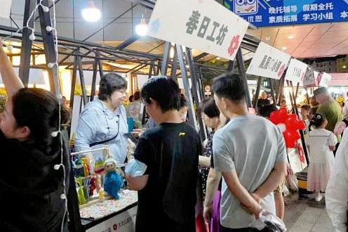 现场,来自社区“丫丫小队”的小小志愿者化身成一个个“爱心售货员”,用稚嫩却响亮的嗓音大声吆喝:“快来看,纯手工制作的太阳花,献一份爱心吧!”他们忙碌的小身影、真诚的眼神,让每一次交易都充满了童真与善意。一位家住附近的阿姨在一个二手书摊前驻足良久,最终精心挑选了几本英语入门书籍。这份“老有所学”的热情,正是社区活力最好的体现。