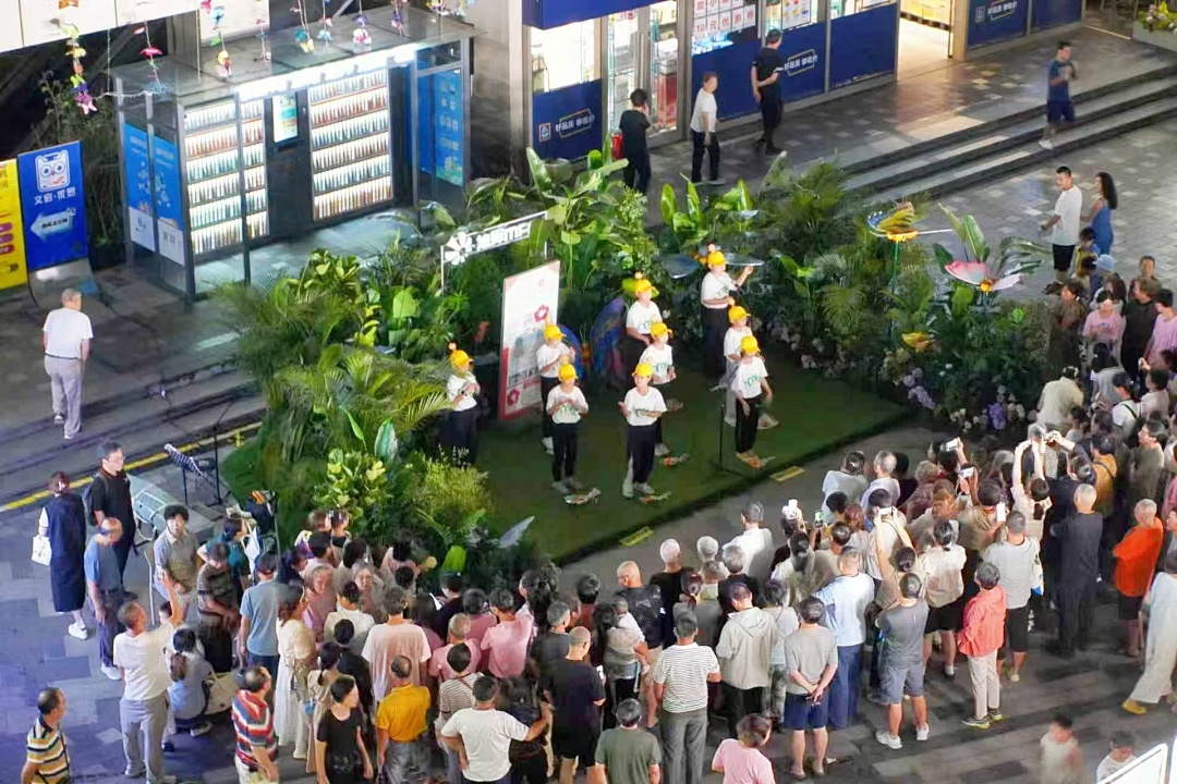 夜晚降临,“人人公益音乐会”正式拉开帷幕。率先登场的是丫丫手工志愿服务队,她们以一曲《大中国》手语舞精彩开场。队员们精神饱满,动作整齐划一,在无声的韵律中用真挚的手语表达对祖国的深沉热爱。静默而有力的表演,瞬间点燃了全场的热情。