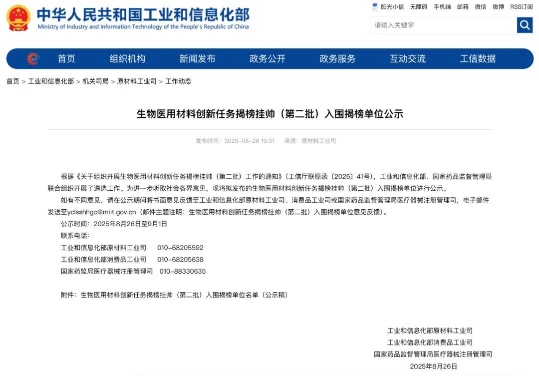 近日,工业和信息化部、国家药监局联合公示第二批生物医用材料创新任务揭榜挂帅名单,位于闵行区浦江镇的上海贝奥路生物材料有限公司(下称:贝奥路)成功入选,承担“胶原/磷酸钙复合材料”项目攻关任务。这一项目是国家在无机非金属材料方向中唯一的复合材料新方向,全国仅3家企业揭榜,贝奥路是上海地区该方向的唯一代表。 据贝奥路相关负责人介绍,“胶原/磷酸钙复合材料”项目的研发核心是将人体骨骼中最重要的无机成分——磷酸钙,与天然胶原有机结合,形成一种更接近人体骨组织结构的修复材料。它既具有与人体骨相似的支撑强度和骨传导性,又通过胶原的引入和表面生物活性优化,为细胞生长和血管长入营造更友好的“微环境”,从而提升早期愈合效果。 未来,项目将创新推出胶原化生物陶瓷人工骨产品,通过仿生技术将骨传导性陶瓷与骨诱导性胶原结合,实现多功能叠加。有效避免陶瓷颗粒脱落,减少炎症风险,促进新骨生成与材料降解平衡。产品复水(干燥的逆过程,指重新吸收水分恢复原有状态的过程)后紧密贴敷骨面,可随意塑形填充缺损,支持微创植入,适用于脊柱融合、椎体成形等微创植骨手术,不仅操作简便,还能大幅提升疗效。 据悉,我国每年因外伤、感染、肿瘤等原因导致的骨缺损患者超过600万,其中约三分之二需植骨治疗。该项目的推进,有望为脊柱外科微创治疗、大段骨缺损修复等复杂临床场景提供新的解决方案,推动骨修复手术向微创化、精准化发展,让更多骨缺损患者实现修复重建。 贝奥路此次“揭榜”依托其深耕二十余年的核心技术积累。公司自2000年创立起,自主建立“细胞—材料—血供三位一体”微结构理论,长期深耕钙磷基生物材料,是国内首个将β-磷酸三钙用于临床骨修复的企业,也是全球率先实现3D打印陶瓷修复体应用的创新者。公司曾获国家技术发明奖等多项荣誉,产品已进入全球10个国家、近4000家医院,累计帮助超40万名患者。 未来,贝奥路将依托粉体合成、仿生结构调控和3D打印等核心优势,聚焦难愈合骨缺损治疗,联合科研院所与医疗机构,加快推动材料从实验室走向临床,为我国高端骨修复材料自主可控与“健康中国”建设贡献力量。