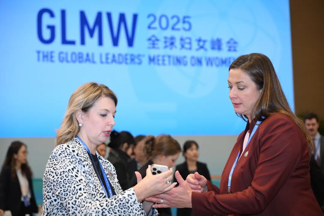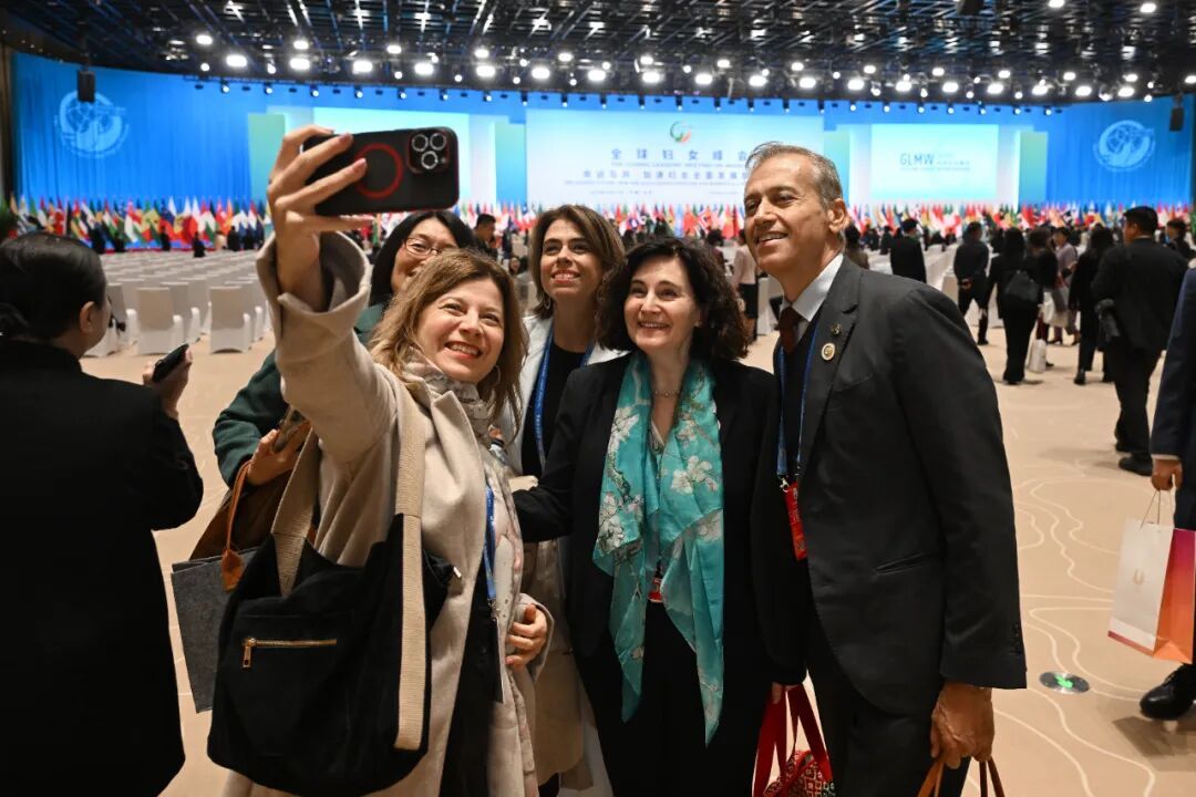 与会嘉宾在全球妇女峰会现场自拍留念。中国妇女报全媒体记者 杨睿 摄