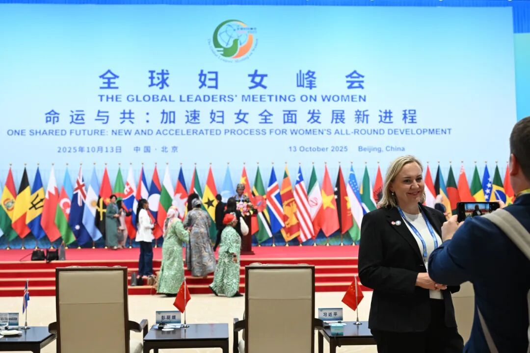 与会嘉宾在全球妇女峰会开幕式现场拍照留念。中国妇女报全媒体记者 杨睿 摄