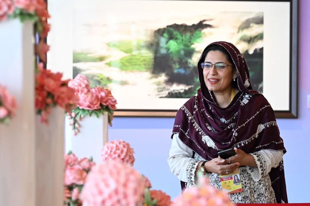 与会嘉宾参观全球妇女峰会女性主题特展。中国妇女报全媒体记者 杨睿 摄