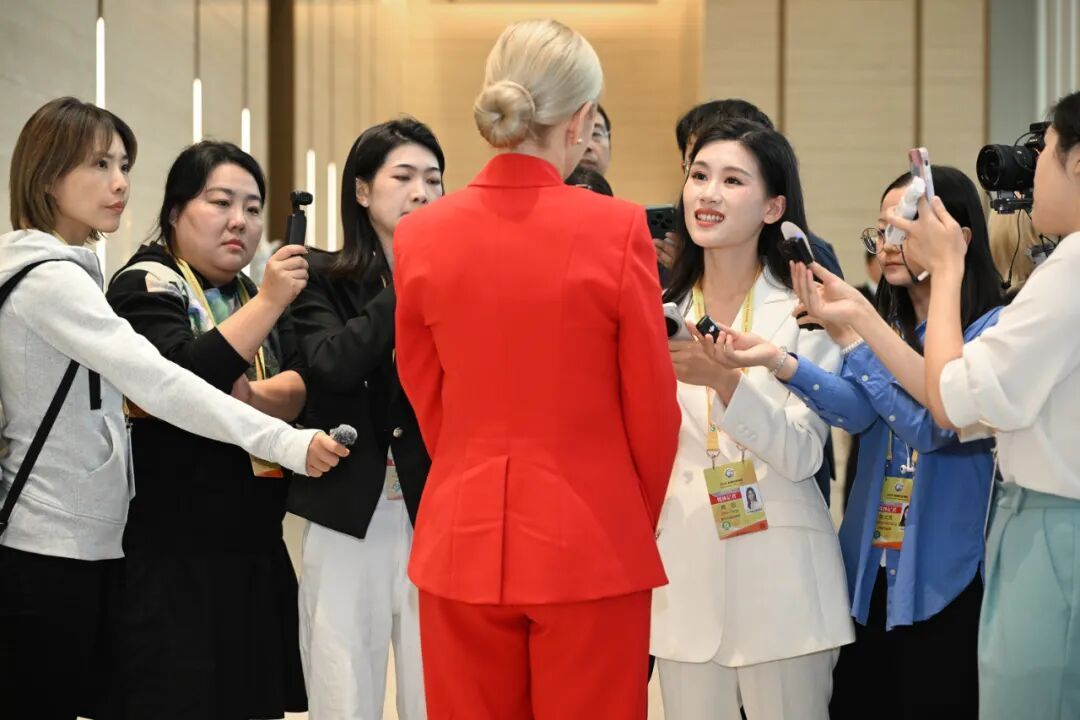 与会嘉宾在全球妇女峰会现场接受记者采访。中国妇女报全媒体记者 杨睿 摄