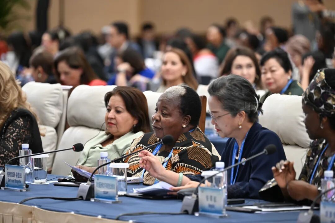 全球妇女峰会现场,格特鲁德·蒙盖拉在会上发言。中国妇女报全媒体记者 杨睿 摄