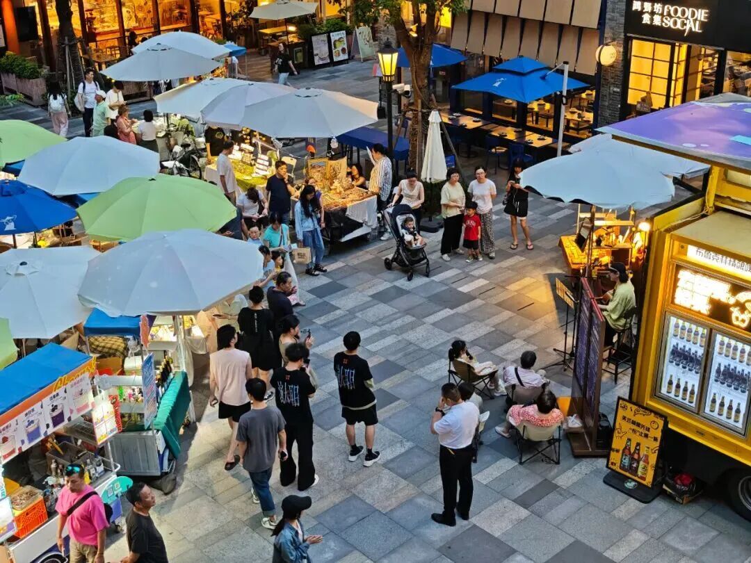 当前,普陀区正通过城市微更新与夜经济等消费场景创新,让烟火气与时尚感在街巷间交融共生。 环球港 “上海之夏”国际消费季热度持续攀升,申城夜晚灯火璀璨,人声鼎沸。 刚刚度过了12岁生日的环球港正通过“首店集群+夜间经济”双轮驱动,打造“越夜越精彩”主题活动:延长营业时间至凌晨2点、推出夜间免费停车……一系列创新举措使其跻身“精彩夜上海”五大夜生活地标。 9月以来,包括RenX TECH、EIDER、红蜻蜓等国内外品牌首店在环球港开业;LadyToday、超级安踏、迪桑特、影石Insta360、额尔敦传统涮、苍山、九厨等20多家品牌的旗舰店在周年庆期间登陆。 “屋顶音乐会氛围太棒了!我和朋友每周都来打卡。”在环球港5楼草坪,市民王女士手持荧光棒兴奋地说。商场数据显示,今年7月以来,世界港口小镇商户夜间消费人气火爆。 鸿寿坊 开业两周年的鸿寿坊同样活力迸发。这座1.5万平方米的商业体,今年有2成商户主动延长夜间营业时间,打造外摆经济消费新场景。鸿寿坊32个外摆区域占用约三成公共空间,向80多家商户开放共享。围绕着外摆区域,鸿寿坊制定了具体的商场规范,要求保证通行街道宽度不小于4.5米并使用花箱、绿植作为隔离物。 商场举办“尝尝酒酒”市集、夏夜晚风歌会,一系列活动拉动了商场营业额和客流量双提升。市集上,95后市民李先生举着精酿啤酒感叹:“以前下班只能回家,现在能约朋友来微醺,这才是夜上海的魅力!”