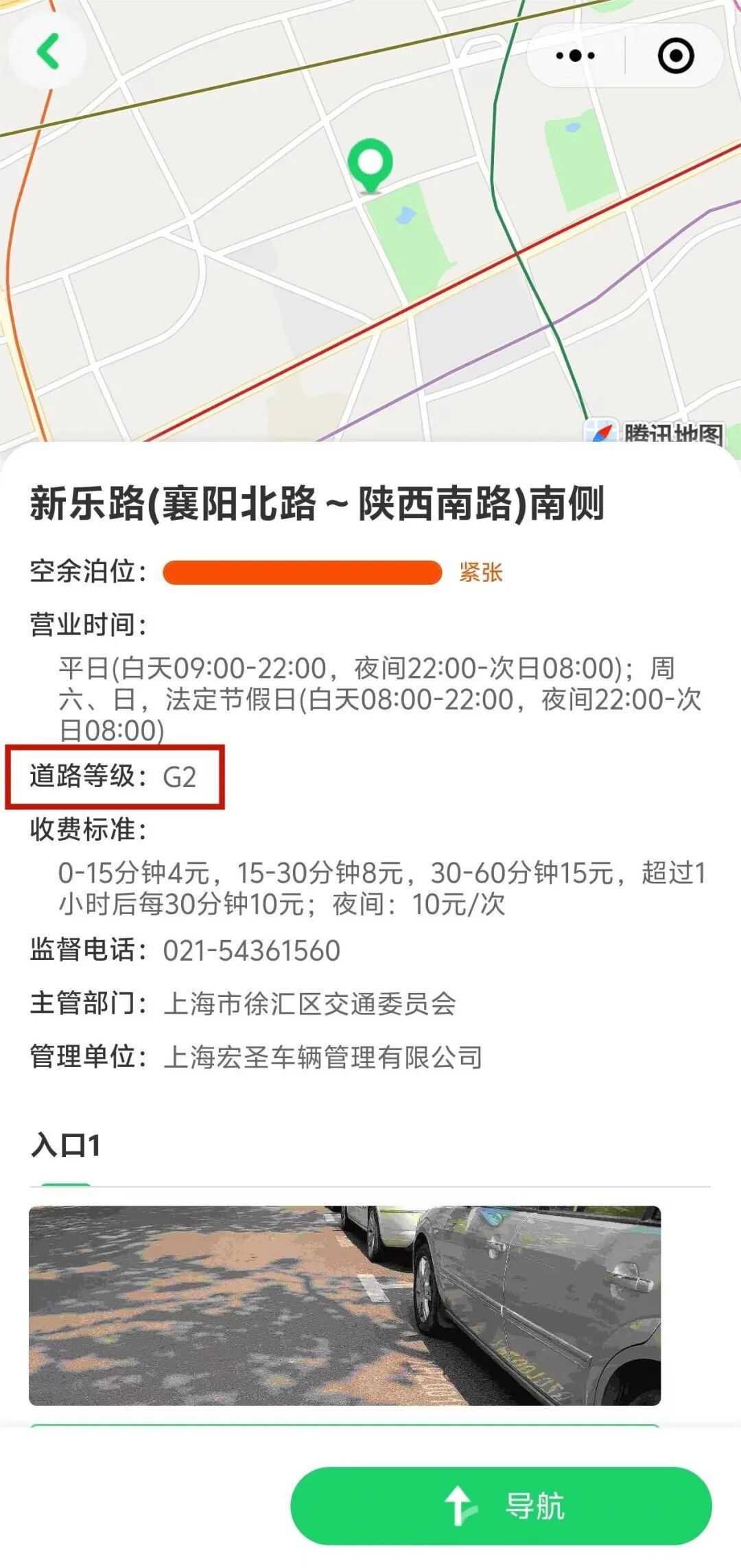 每个停车位上还划了编号,前两位为所在区简写。同时,“上海停车”APP也在每一个智慧道路停车场详情页面标注上述信息供查询参考。
