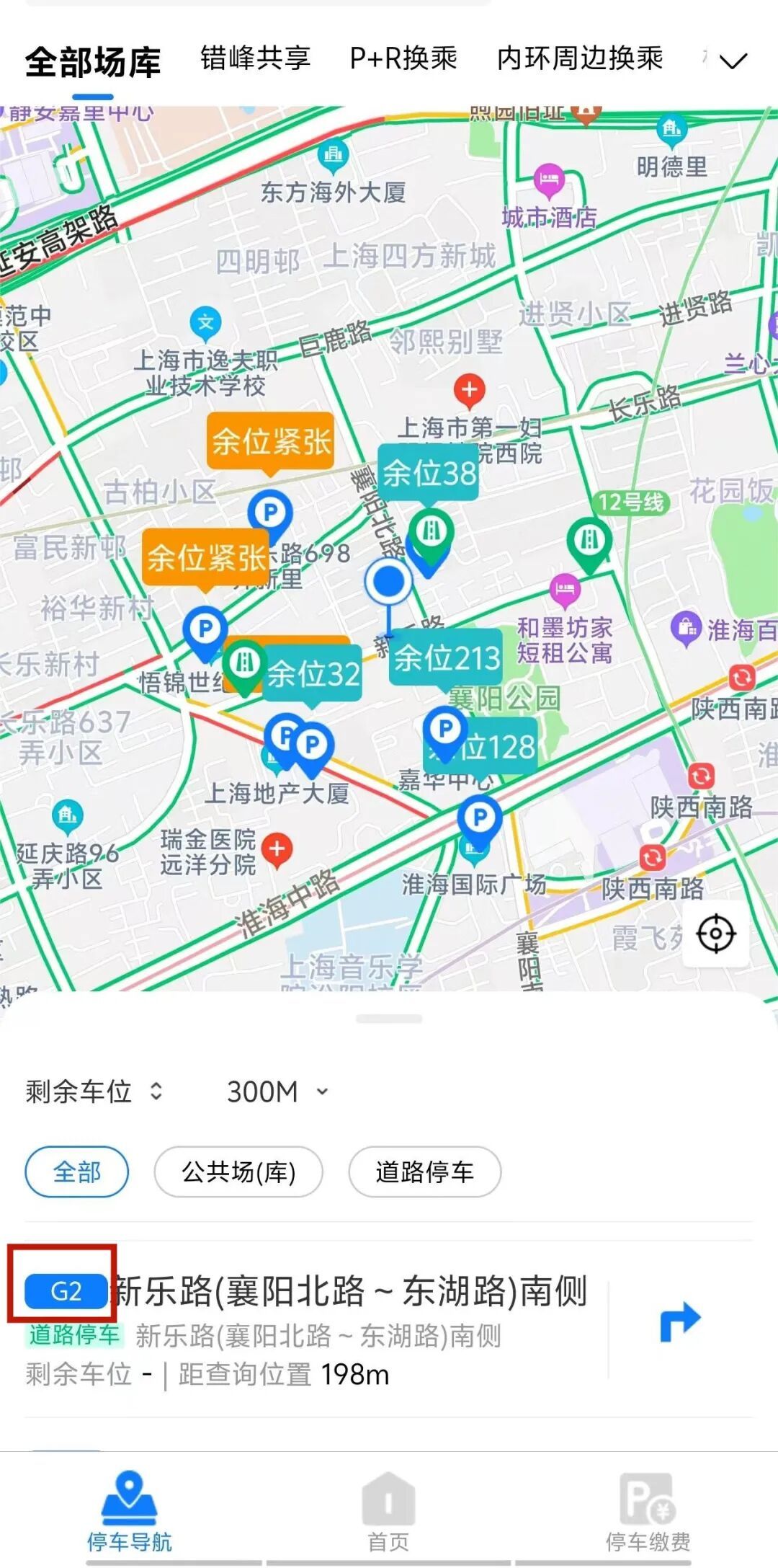 点击首页左下角“附近”,在搜索栏中输入道路停车场名称后点击进入详情页,在下方文字信息中查看“道路等级”,标注“G1/G2”的属于智慧道路停车场。