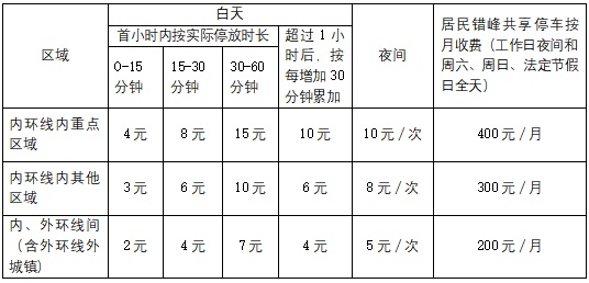 注:1.有关白天和夜间的具体时段以道路停车收费标志牌公示的时段信息为准;