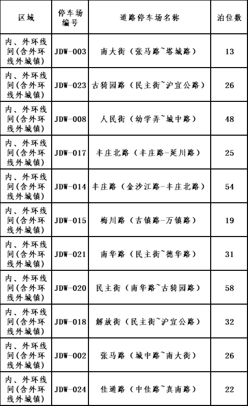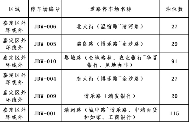 嘉定已实施智慧收费管理的道路停车场清单