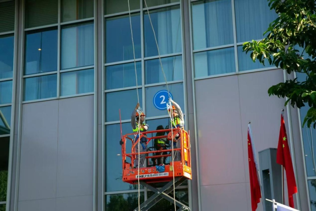 为切实提高玻璃幕墙高坠隐患应急处置能力,保障城市安全运维,10月11日,市住房城乡建设管理委会同闵行区建管委在上海玻机“开幕啦”城市更新园区举行“2025年上海市既有建筑玻璃幕墙应急抢险演练比武”活动。