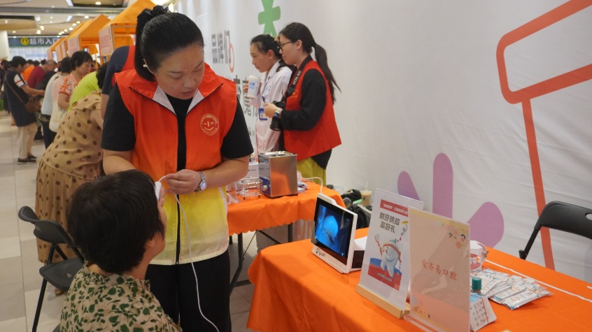 另一侧,由“添睦宝”联盟单位组成的游戏点位热闹非凡,爱心企业们将社会责任融入社区服务,用互动传递温暖。健康守护区更是暖意融融,眼科、口腔及社区卫生服务中心提供爱心义诊;“识盐知味”“乐食惠老”等福利宣传,将健康饮食理念送到老人心坎;清香的茶饮与舒缓的推拿,则为每一位参与者拂去疲惫,注入活力。从政策到健康,从娱乐到关怀,为银发生活保驾护航。