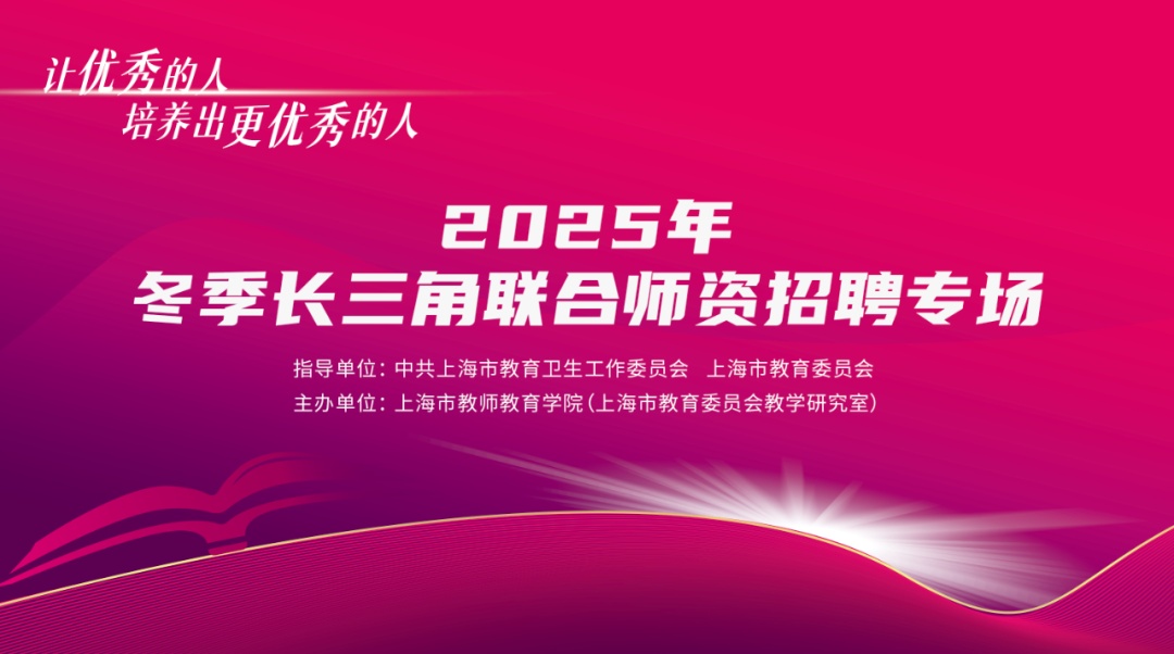 由中共上海市教育卫生工作委员会、上海市教育委员会指导,上海市教师教育学院(上海市教育委员会教学研究室)主办的2025年冬季长三角联合师资招聘专场将于10月19日(周日)在上海跨国采购会展中心举行。招聘对象包括应届毕业生、在职优秀教师、海内外教育英才以及持有教师资格证的社会人士。本次活动是我市贯彻全国和上海市教育大会精神,加强新时代高素质专业化教师队伍建设的重要举措之一。