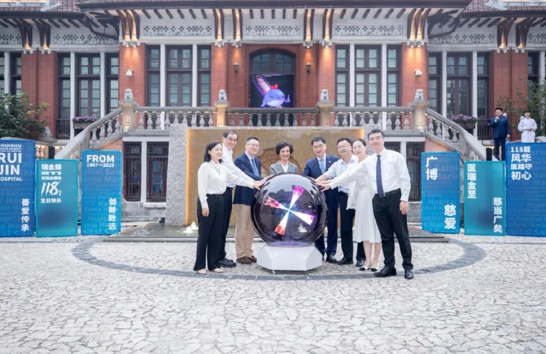 首先,由上海市慈善基金会理事长钟燕群,市卫健委副主任罗蒙,上海交通大学医学院党委副书记、副院长吴正一,上海市红十字会副会长万兴旺,上海广播电视台副台长吴茜,中国建设银行上海分行副行长李莉,和瑞金医院院长宁光,瑞金医院党委书记胡伟国一起点亮“水晶球”,与此同时,瑞金医院IP形象“瑞金鲸”携百年善爱从瑞金医院百年老楼中穿越而来。