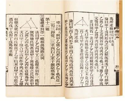 徐光启与利玛窦合译《几何原本》前六卷,后九卷由李善兰与伟烈亚力合译。这是在上海刊刻的十五卷完整本《几何原本》译本。