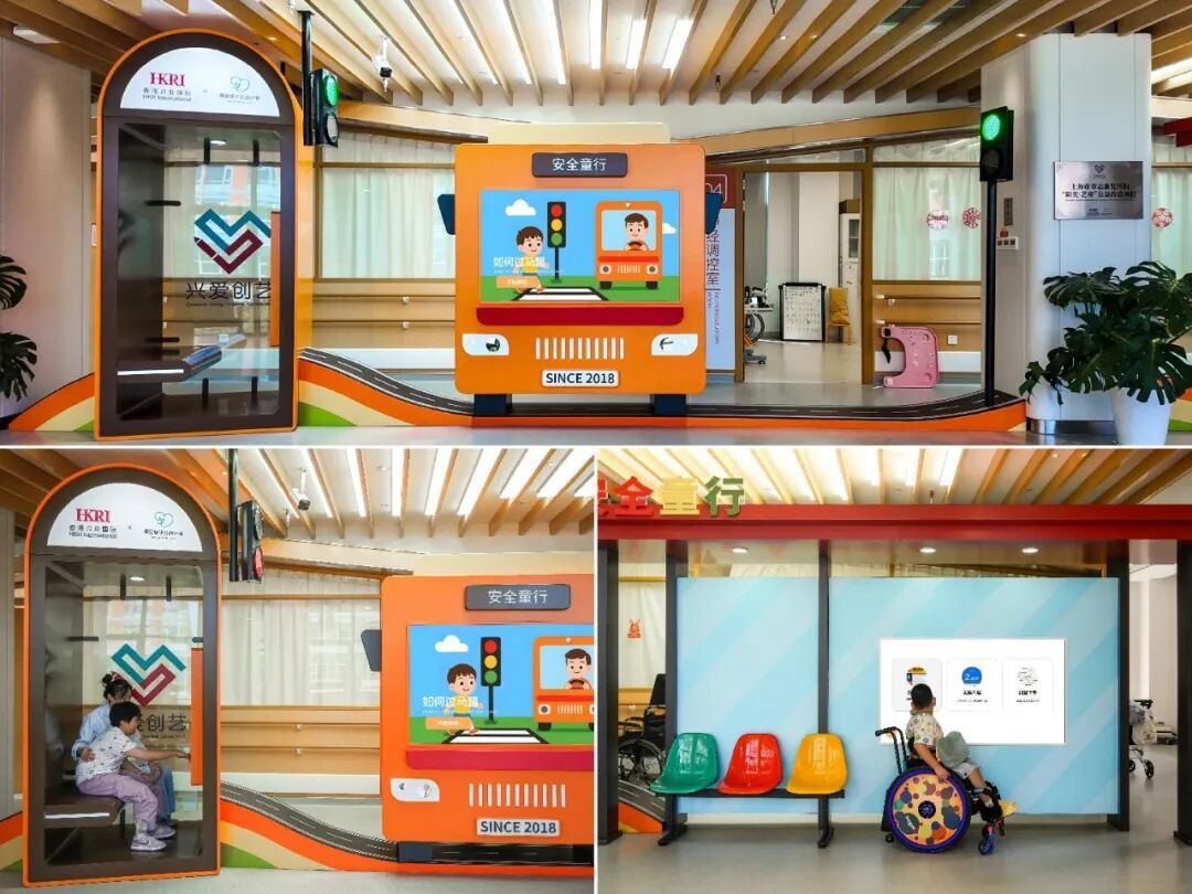 公益空间位于儿童康复楼二楼公共区域,改造面积约182平方米。该区域每日为超过200人次的孤独症、唐氏综合征、脑瘫等特殊儿童提供康复训练服务。据香港兴业国际业务拓展及市务总经理王泽明介绍,基于特殊儿童感知与行为特点,项目特邀同济大学设计创意学院师生团队,联合院方康复专家,共同将“灰空间”变身为集多媒体互动教学与模拟交通实景于一体的多功能空间,旨在通过游戏化训练,有效提升特殊儿童危险识别与社交适应能力。