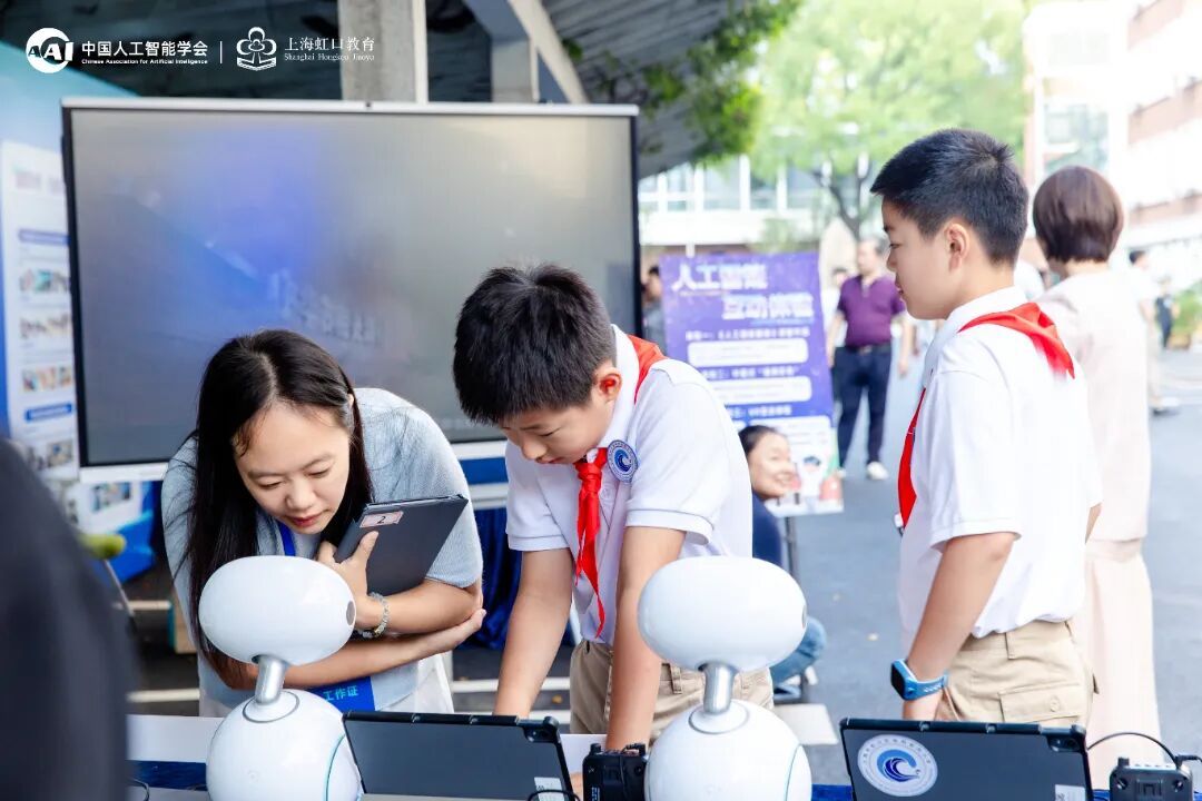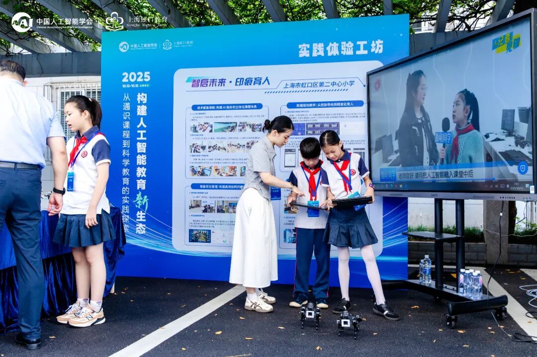 作为全国中小学科学教育实验区和上海市人工智能教育试验区,虹口在AI教育与科学教育融合实践中积累了丰富经验,也催生了诸多可落地、可体验的成果。现场,虹口区曲阳第四小学、虹口区第二中心小学、上海市民办丽英小学、江湾初级中学、上海师范大学附属虹口中学、复旦大学附属复兴中学,6所虹口学校的师生带来了精彩的实践体验工坊,让与会嘉宾在亲身体验和深度交流中感受智能教育的无限可能。