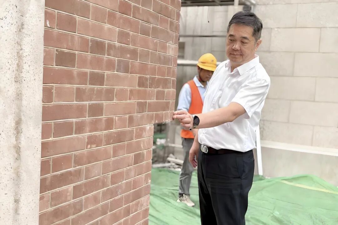 10月14日,永业集团党委书记、董事长戴金梁调研恒昌玖里高端风貌别墅、益福荟颐养院,集团工程管理部有关同志等陪同。 在恒昌玖里,戴金梁现场察看了项目高端风貌别墅群整体巷弄、立面及样板间,探讨了尺度规划、材质融合运用等方面的主要做法,指出要学习借鉴有关经验,在自主开发项目中不断精进风貌修复技术,将保护传承与创新发展有机结合,通过高品质材质运用和细节把控,赋予历史风貌新的时代内涵与现代功能,打造承载历史记忆、彰显文化自信、契合现代生活需求的精品力作。 在益福荟颐养院,戴金梁详细了解了运营现状、后续搬迁实施计划,希望对接永年里城市更新项目总体实施规划,进一步加强统筹协调、做好工作衔接、尽早启动永年里项目开发。