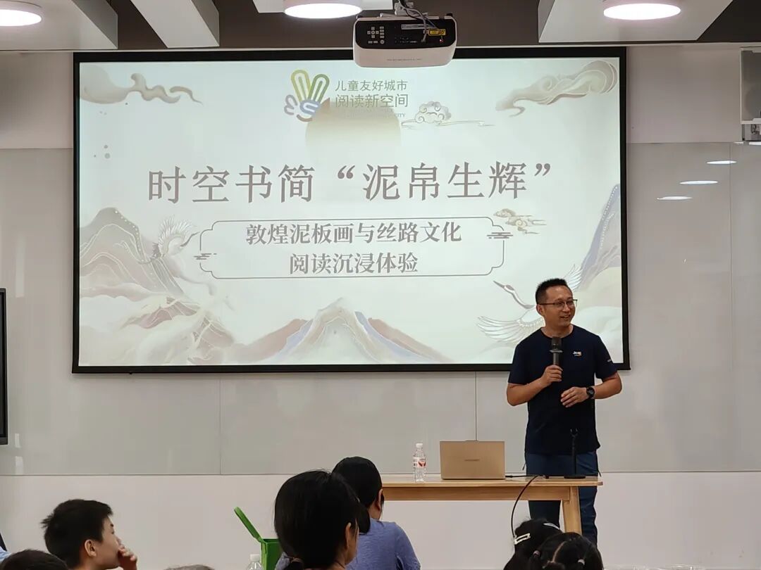 “时空书简‘泥帛生辉’敦煌泥板画与丝路文化阅读沉浸体验”活动日前在徐汇区田林街道党群服务中心举行。本次活动主要面向学龄儿童亲子家庭,同时也是田林街道打造“儿童友好城市阅读新空间”的主题活动之一。 蔡志文带来敦煌知识讲座 本次活动的讲师蔡志文为参与者们带来了一场敦煌知识讲座,把世界文化遗产敦煌的发展脉络娓娓道来。一幅幅精美的敦煌壁画图片,让参与者们仿佛穿越在历史的长河中,感受敦煌延续两千多年的不朽文明和艺术魅力。 亲子家庭共同参与活动 《九色鹿》是中国“70后”“80后”熟悉的经典动画片,而它正是根据敦煌莫高窟第257窟壁画《鹿王本生图》改编而来。蔡志文为孩子们展示了壁画原图,而孩子们在他的指导下用中国传统绘画技法“掏染法”绘制九色鹿泥板画。 孩子们学习在泥板上画九色鹿 孩子们在泥板上先围绕九色鹿的轮廓画出土红色的背景,然后再加上山石、花纹等。不少孩子是初次接触敦煌壁画,在老师、家长的指导和鼓励下,都成功完成了人生中的第一幅泥板画。 本次活动的主办方新华博库书城已与田林街道合作共建二十年。活动现场,蔡志文还推荐了不少关于敦煌文化主题的书籍,这些书在新华博库书城可以买到,在田林街道图书馆也可以借阅,供大、小读者进一步了解敦煌文化。 一位家长告诉记者,自己的外孙女从幼儿园开始就来田林街道党群服务中心参加活动,如今孩子已经上二年级了。孩子的母亲一听说有敦煌文化的沉浸式体验活动,就马上给她报了名。本次活动主办方田林街道图书馆相关负责人表示,孩子们通过阅读丝路历史与敦煌艺术故事,激发了其对中华文化的深度认知,也亲手绘制敦煌泥板画让孩子们在色彩与图案的碰撞中体验了“从阅读到艺术”的全过程。