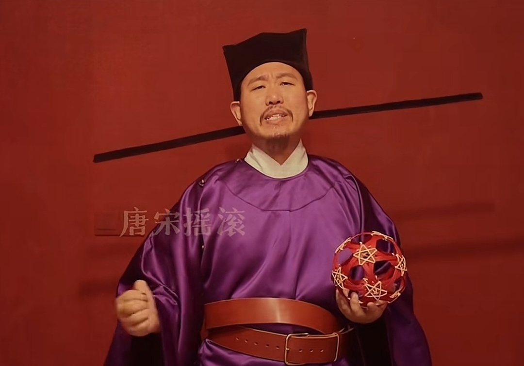 身着宋代紫袍官服、