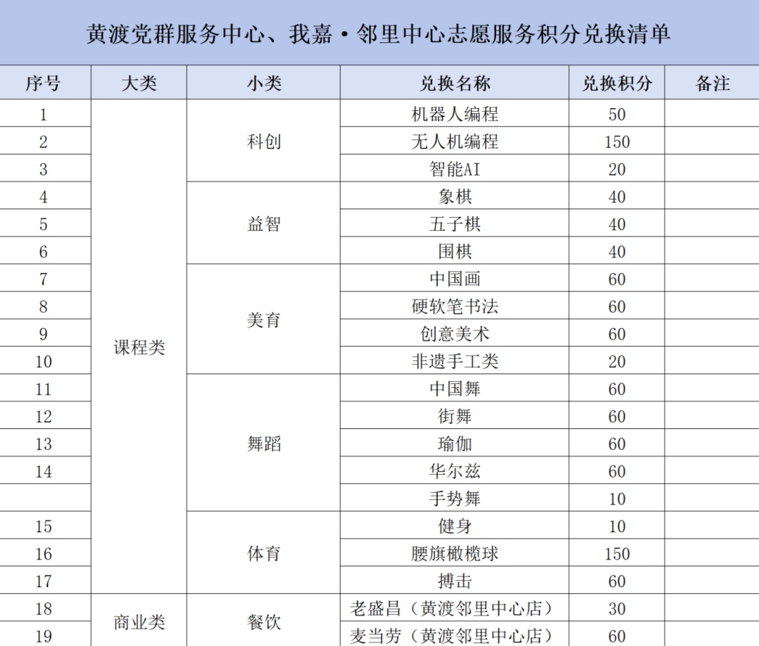 近日,安亭镇黄渡党群服务中心(我嘉·邻里中心)推出志愿服务积分制度,居民参与志愿活动可累计积分,用于兑换课程、商铺优惠券或商品。